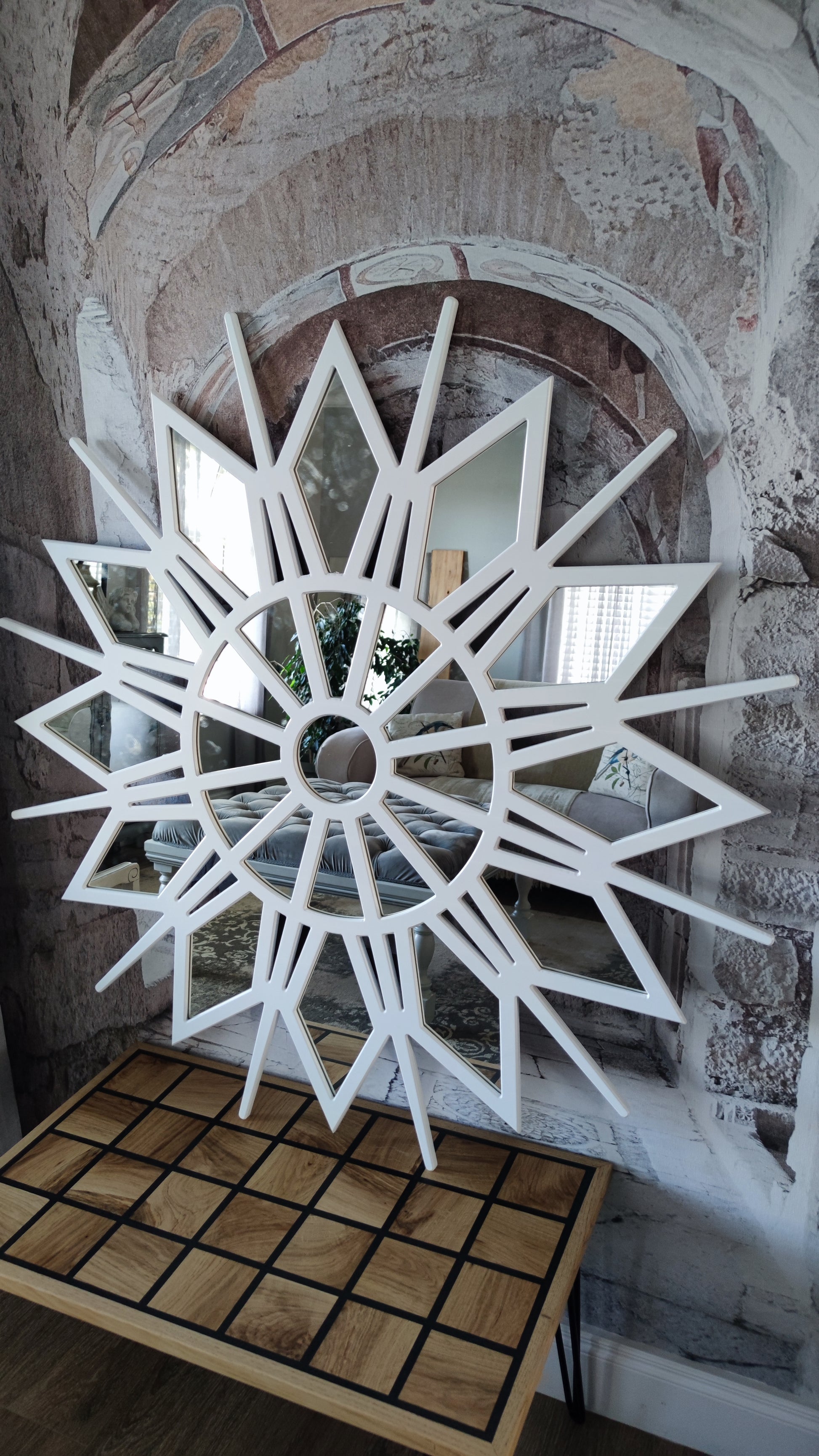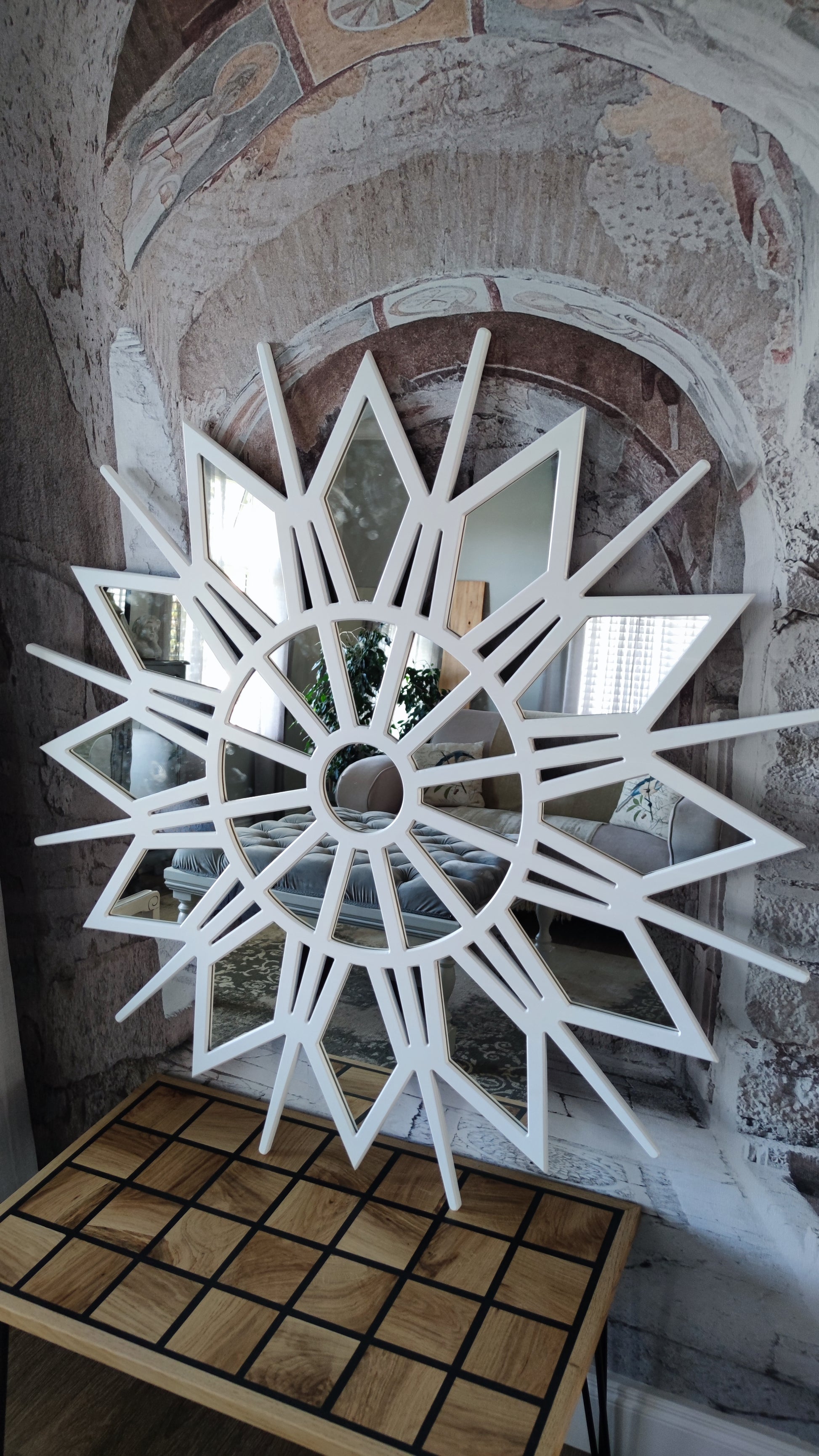 Introducing our captivating Sunburst Mirror, meticulously crafted to illuminate your space with radiant elegance. Crafted from premium MDF (Medium-Density Fiberboard) and adorned with a sleek spray-painted finish, this mirror exudes sophistication and charm.